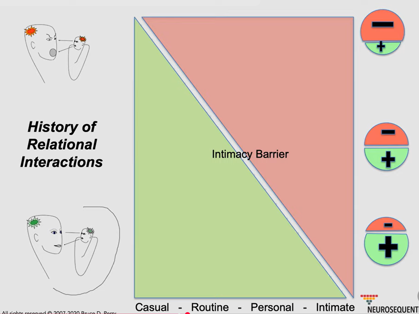 What Bruce Perry argues, is that based on early relational templates, where the barrier sits may look different. For instance, if someone has had negative relational experiences, they may thrive on casual relationships, but find closer, deeper relationships much more challenging.